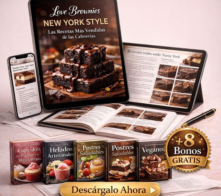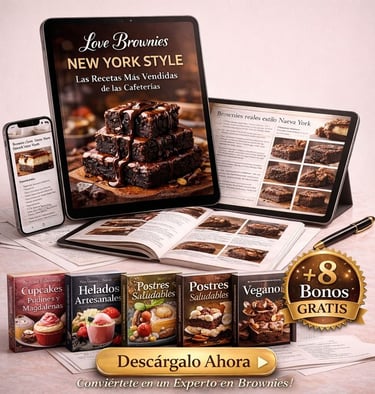 Love Brownies New York Style – Las Recetas Más Vendidas de las Cafeterías es la guía clara y práctica que te acompaña paso a paso para crear brownies densos, fudgy y visualmente irresistibles, con calidad de cafetería desde casa.